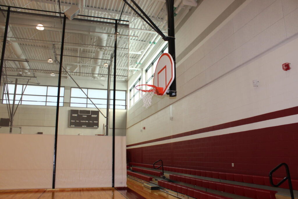 The new construction of Crofton High School created an opportunity for TJ Distributors, Inc. to give this school top of the line products in both their main gym, and their auxiliary gym. We delivered and installed: 4 banks of Hussey Seating Company‘s Maxam, wall attached, classic wood seat bleachers, with red vinyl end curtains. Ceiling […]